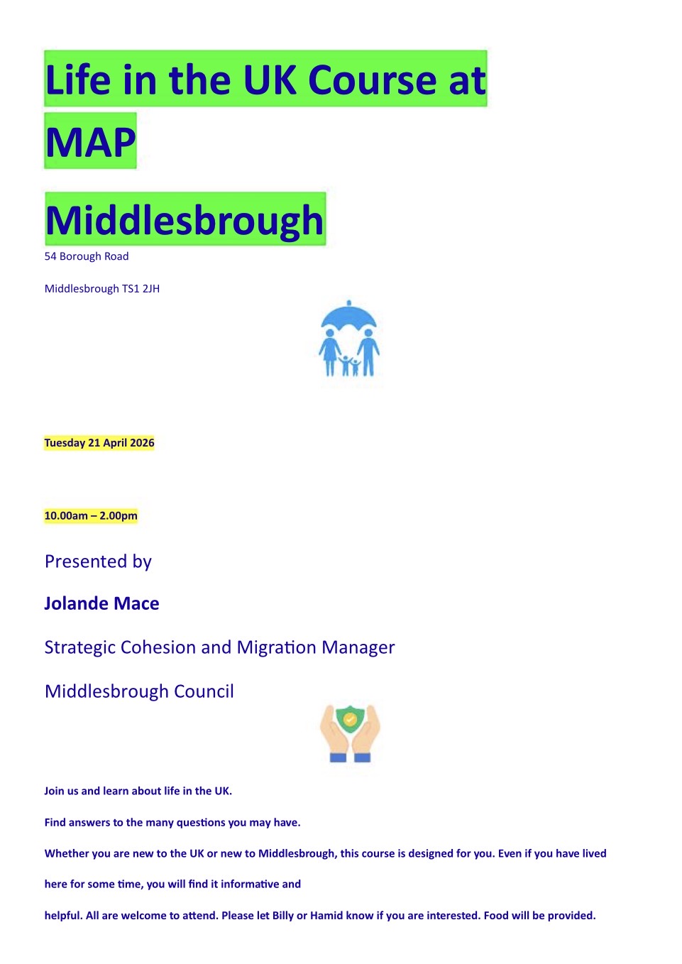 The session will be presented by Jolande Mace, Strategic Cohesion and Migration Manager at Middlesbrough Council.
