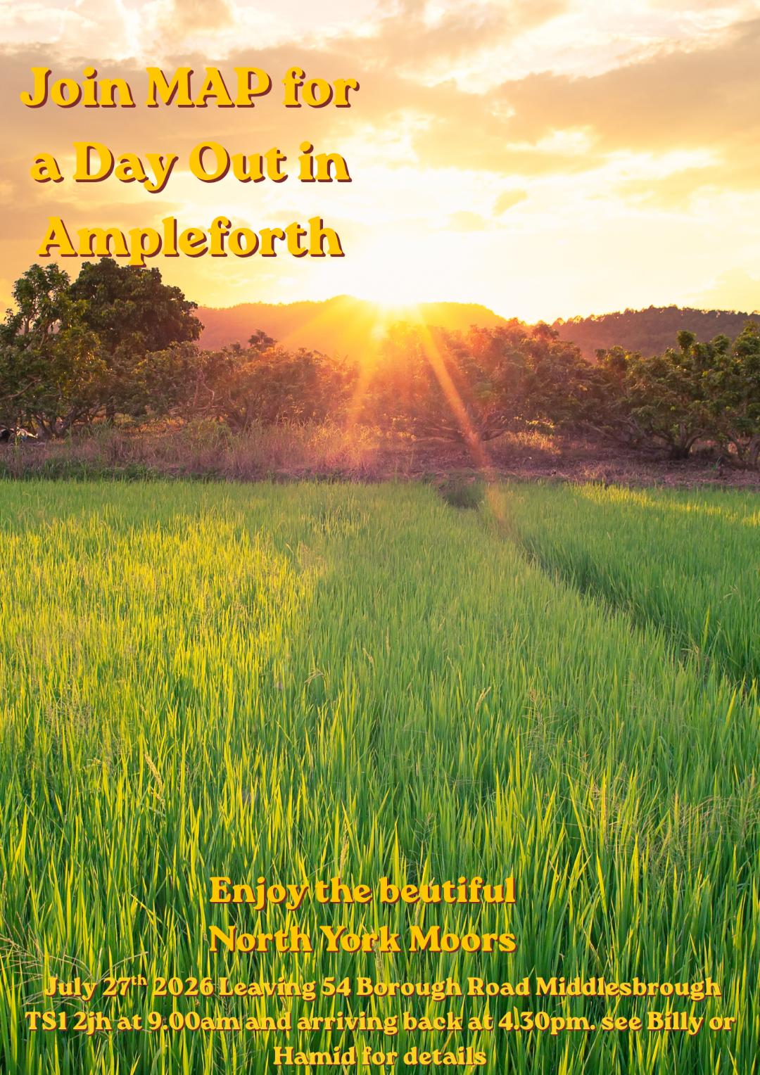 Join MAP for a refreshing day out in Ampleforth and enjoy the beautiful scenery of the North York Moors. This trip offers a perfect opportunity to relax, explore nature, and spend time in great company.